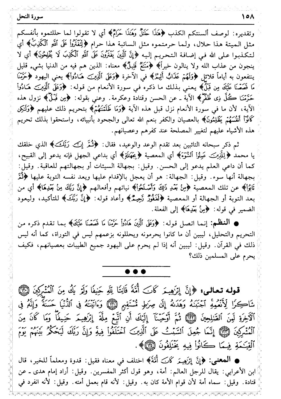 بررسی لغات، مفردات، معنا و تفسیر آیات شریفه ۱۱۶ تا ۱۱۹ و ۱۲۰ تا ۱۲۴ سوره نحل