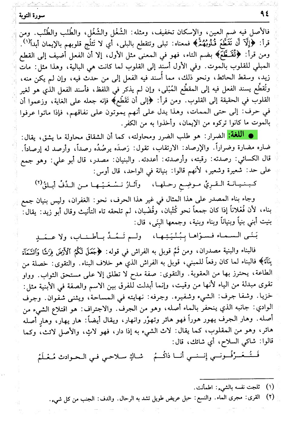 ادامه بررسی لغات، مفردات، معنا و تفسیر آیات شریفه ۱۰۷ و ۱۰۸ و ۱۰۹ و ۱۱۰ سوره توبه