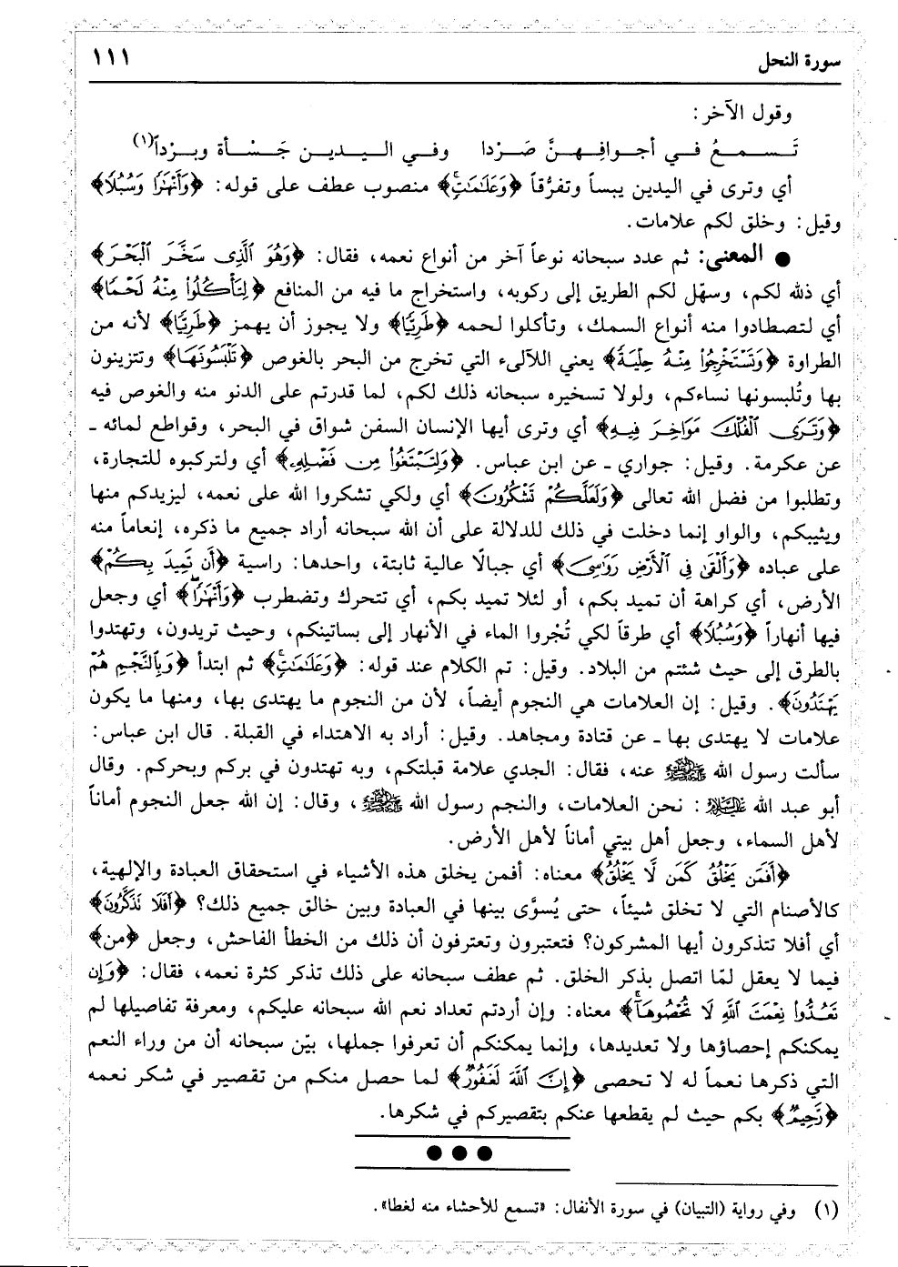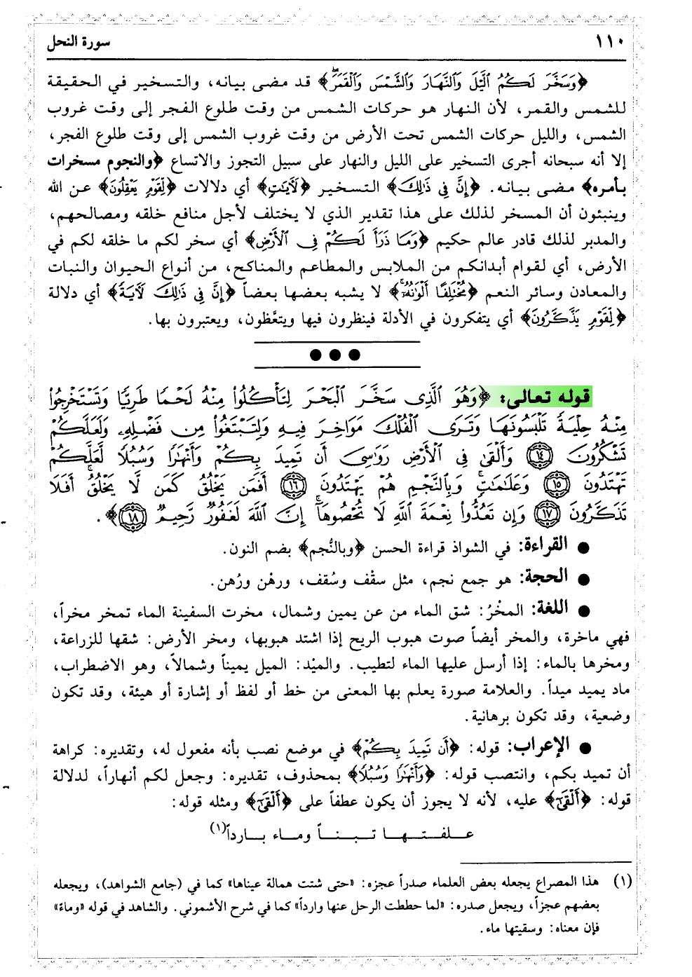 وَهُوَ الَّذِی سَخَّرَ الْبَحْرَ لِتَأْکُلُوا مِنْهُ لَحْمًا طَرِیًّا وَتَسْتَخْرِجُوا مِنْهُ حِلْیَةً تَلْبَسُونَهَا وَتَرَی الْفُلْکَ مَوَاخِرَ فِیهِ وَلِتَبْتَغُوا مِنْ فَضْلِهِ وَلَعَلَّکُمْ تَشْکُرُونَ﴿۱۴﴾ وَأَلْقَی فِی الأرْضِ رَوَاسِیَ أَنْ تَمِیدَ بِکُمْ وَأَنْهَارًا وَسُبُلا لَعَلَّکُمْ تَهْتَدُونَ﴿۱۵﴾ وَعَلامَاتٍ وَبِالنَّجْمِ هُمْ یَهْتَدُونَ﴿۱۶﴾ أَفَمَنْ یَخْلُقُ کَمَنْ لا یَخْلُقُ أَفَلا تَذَکَّرُونَ﴿۱۷﴾ وَإِنْ تَعُدُّوا نِعْمَةَ اللَّهِ لا تُحْصُوهَا إِنَّ اللَّهَ لَغَفُورٌ رَحِیمٌ﴿۱۸﴾