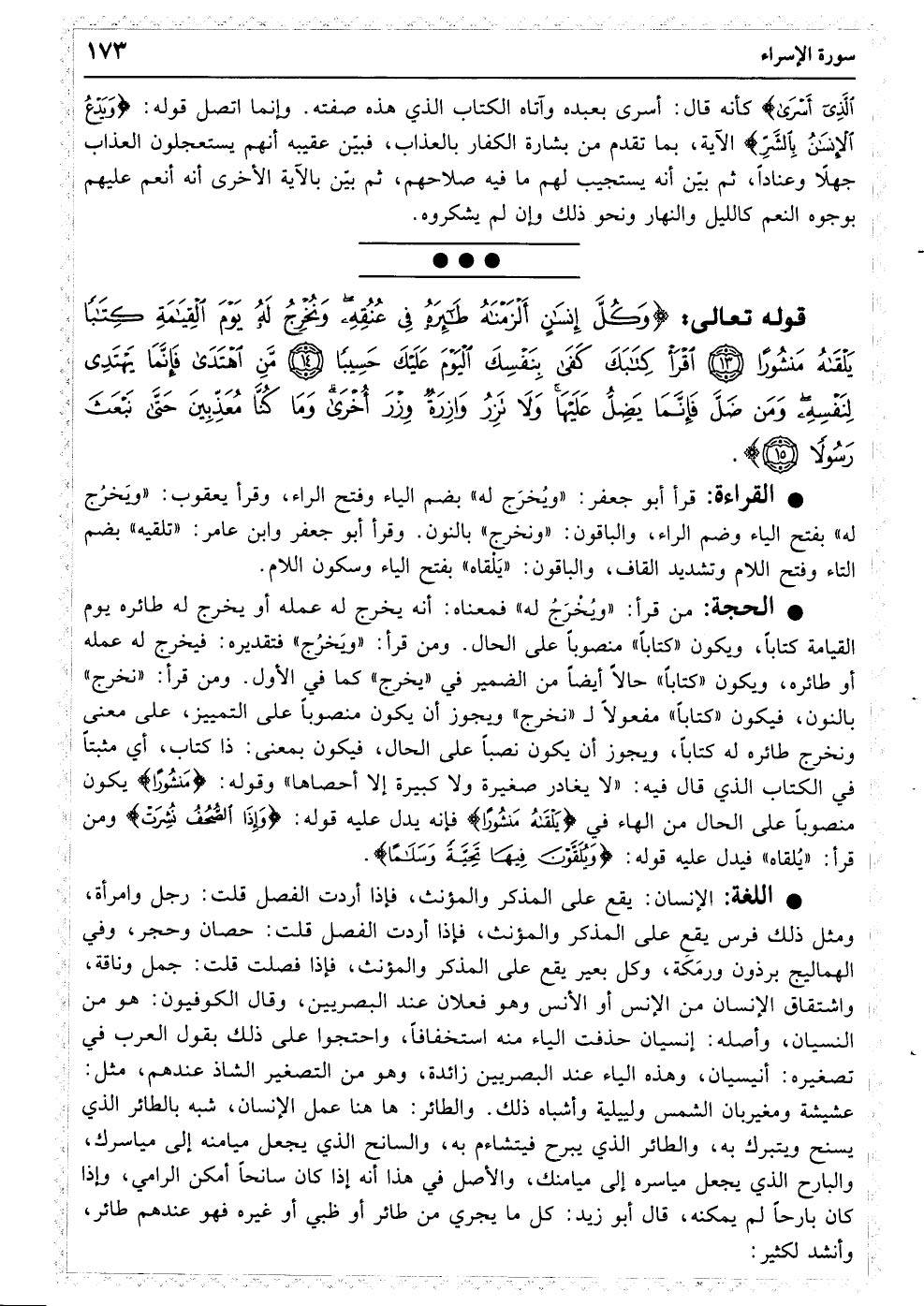بررسی لغات، مفردات، معنا و تفسیر آیات شریفه ۱۳ تا ۱۵ سوره اِسراء
