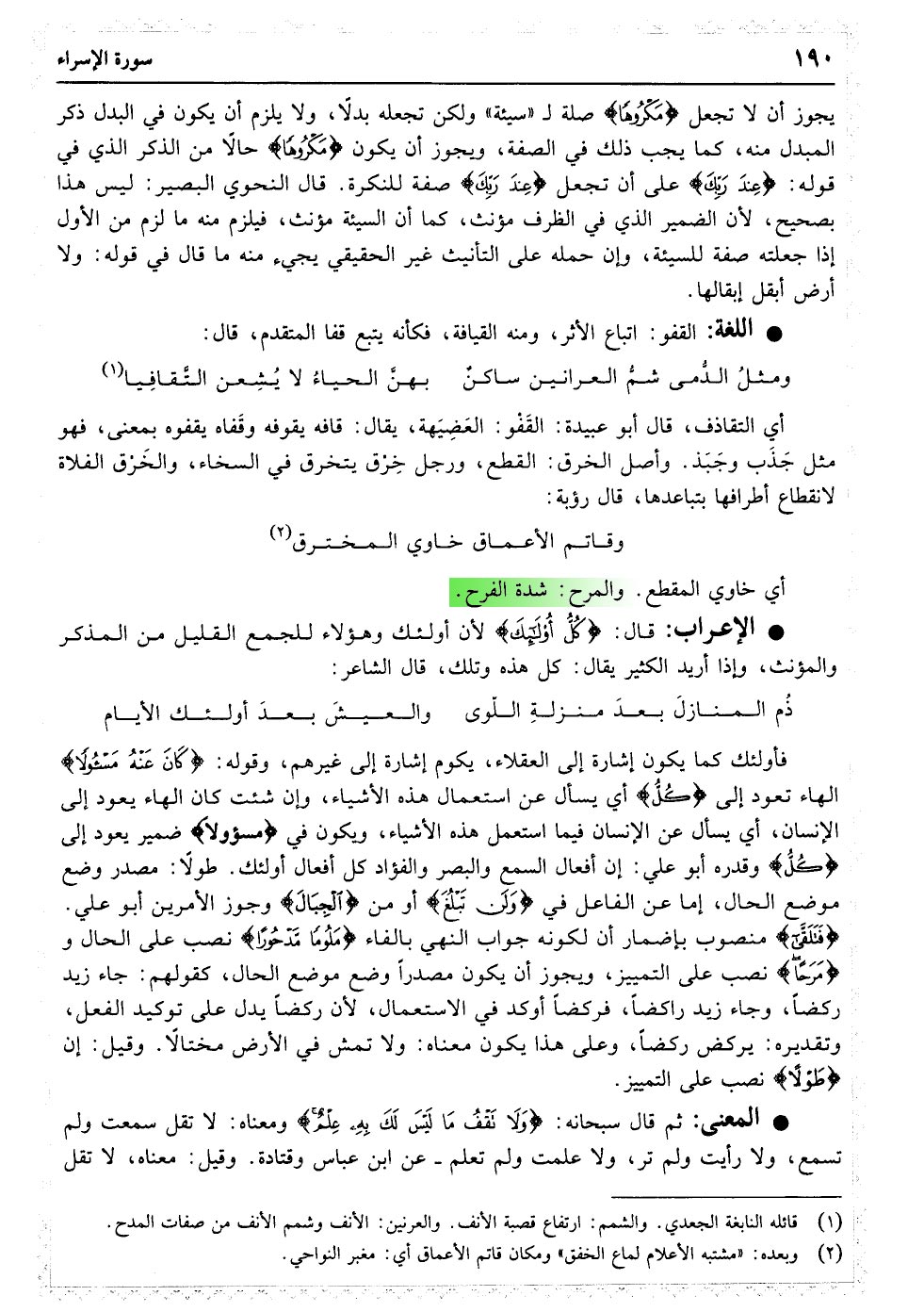 بررسی لغات، مفردات، معنا و تفسیر آیات شریفه ۳۶ تا ۴۰ سوره اِسراء