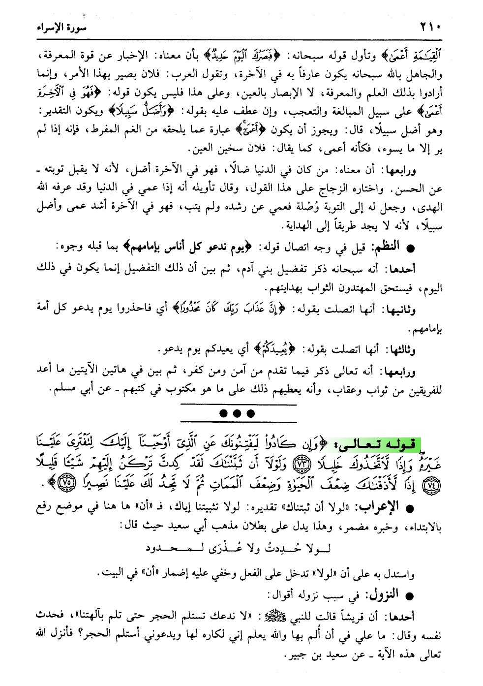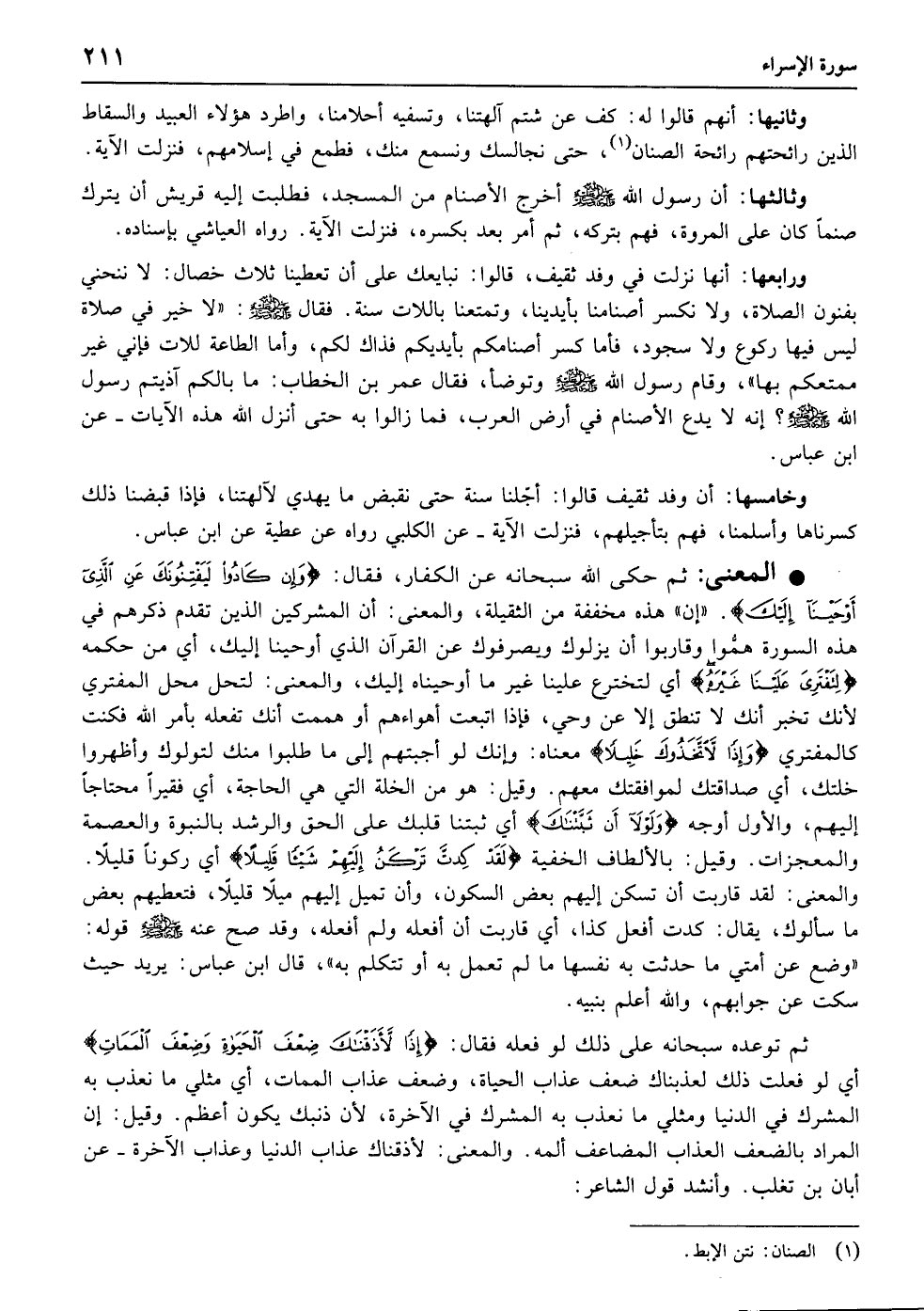 وَإِنْ کَادُوا لَیَفْتِنُونَکَ عَنِ الَّذِی أَوْحَیْنَا إِلَیْکَ لِتَفْتَرِیَ عَلَیْنَا غَیْرَهُ وَإِذًا لاتَّخَذُوکَ خَلِیلا﴿۷۳﴾ وَلَوْلا أَنْ ثَبَّتْنَاکَ لَقَدْ کِدْتَ تَرْکَنُ إِلَیْهِمْ شَیْئًا قَلِیلا﴿۷۴﴾ إِذًا لأذَقْنَاکَ ضِعْفَ الْحَیَاةِ وَضِعْفَ الْمَمَاتِ ثُمَّ لا تَجِدُ لَکَ عَلَیْنَا نَصِیرًا﴿۷۵﴾