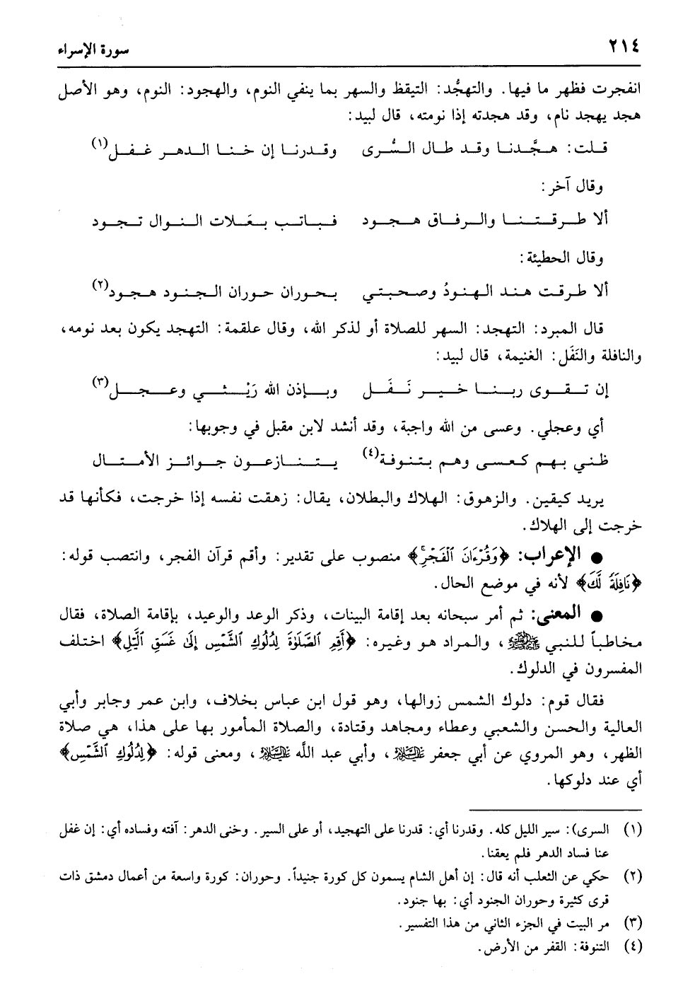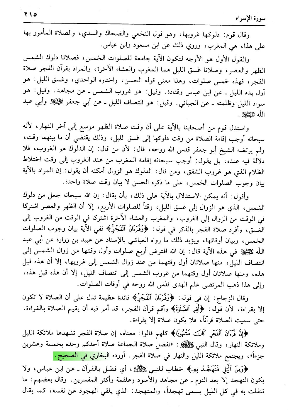 أَقِمِ الصَّلاةَ لِدُلُوکِ الشَّمْسِ إِلَی غَسَقِ اللَّیْلِ وَقُرْآنَ الْفَجْرِ إِنَّ قُرْآنَ الْفَجْرِ کَانَ مَشْهُودًا﴿۷۸﴾ وَمِنَ اللَّیْلِ فَتَهَجَّدْ بِهِ نَافِلَةً لَکَ عَسَی أَنْ یَبْعَثَکَ رَبُّکَ مَقَامًا مَحْمُودًا﴿۷۹﴾ وَقُلْ رَبِّ أَدْخِلْنِی مُدْخَلَ صِدْقٍ وَأَخْرِجْنِی مُخْرَجَ صِدْقٍ وَاجْعَلْ لِی مِنْ لَدُنْکَ سُلْطَانًا نَصِیرًا﴿۸۰﴾ وَقُلْ جَاءَ الْحَقُّ وَزَهَقَ الْبَاطِلُ إِنَّ الْبَاطِلَ کَانَ زَهُوقًا﴿۸۱﴾